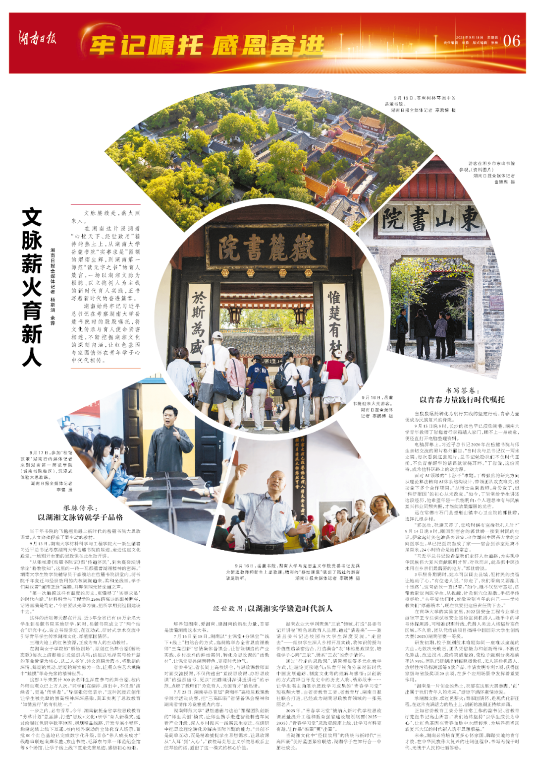 當(dāng)湖湘文化中“經(jīng)世致用”的傳統(tǒng)與新時(shí)代“三高四新”美好藍(lán)圖緊密聯(lián)結(jié),湖湘學(xué)子在知行合一中茁壯成長。